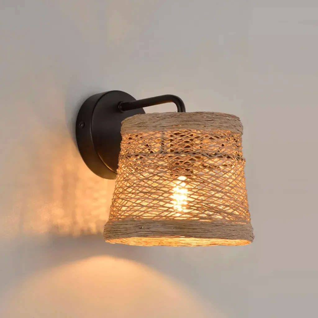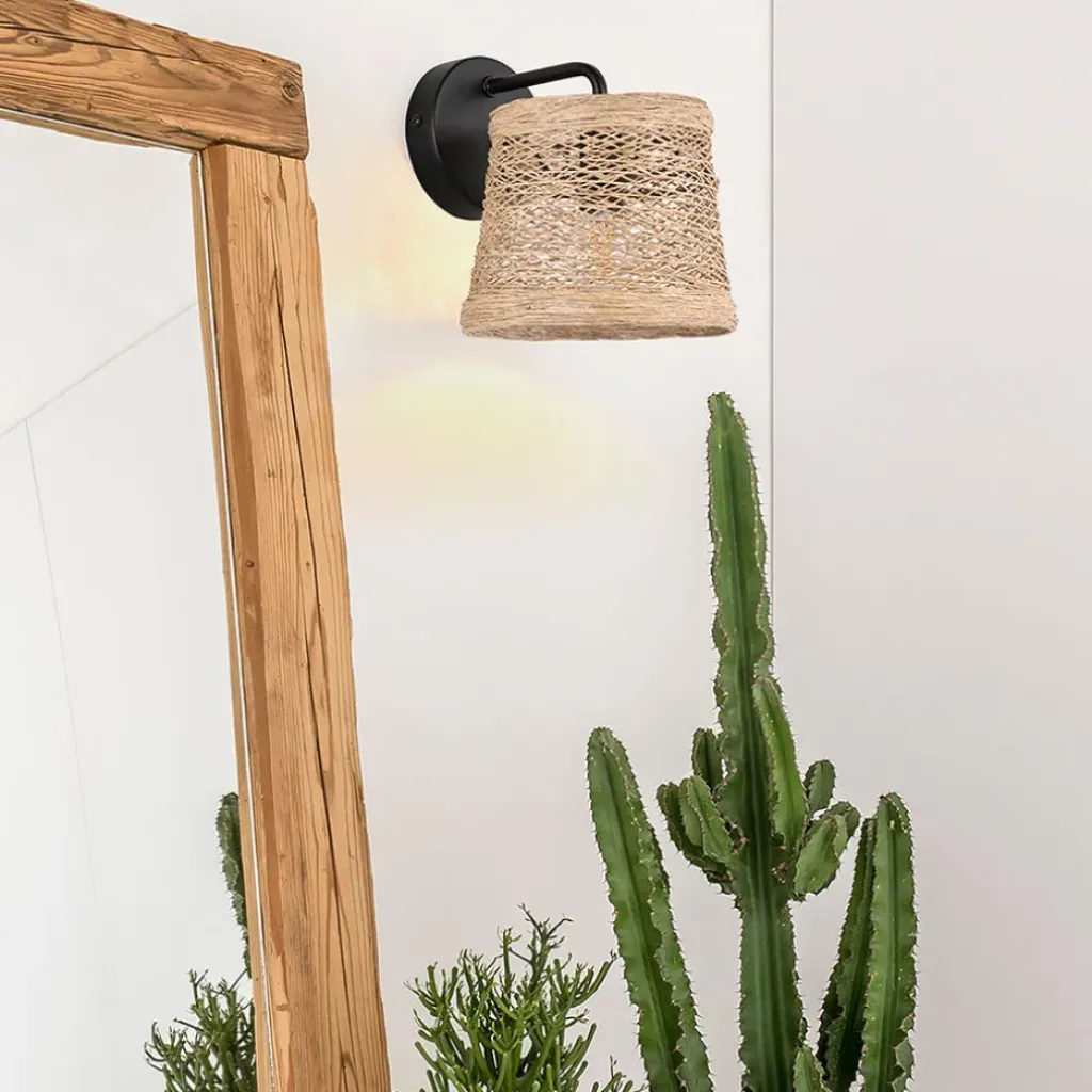 Sublimez votre intérieur avec cette applique en métal naturel de 18 cm de hauteur.Céramique + rotin