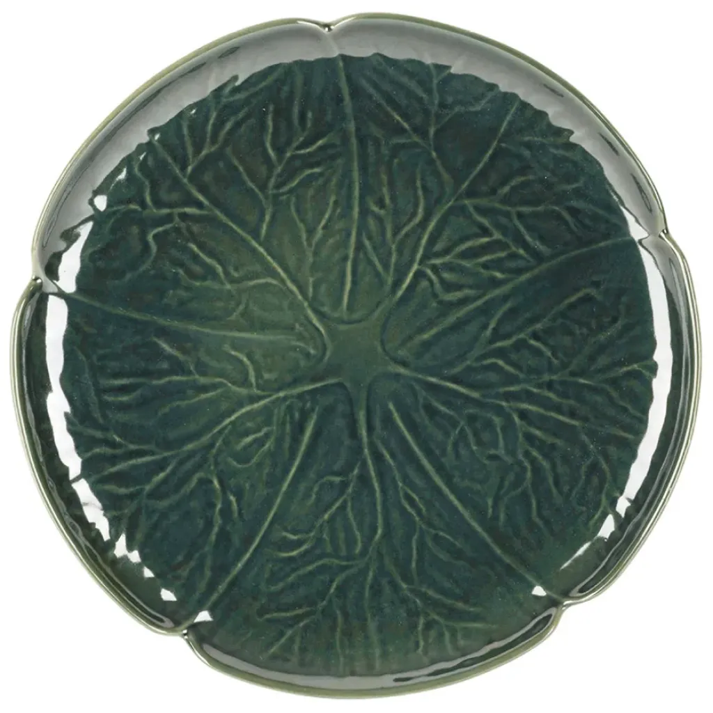 Avec son diamètre généreux de 27 cm, cette assiette plate en grès vert s’inspire de la nature avec son design en forme de feuille de chou.