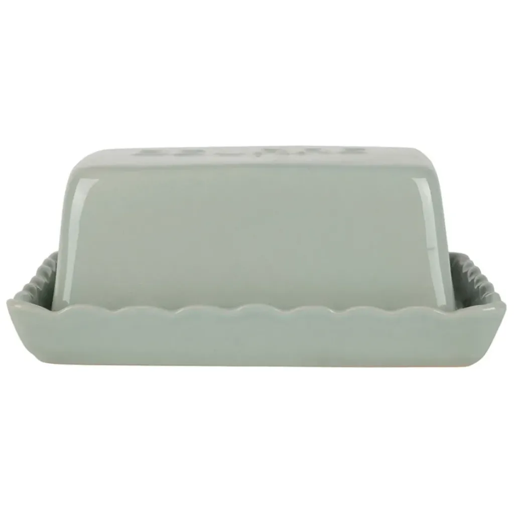 Découvrez une touche de charme rustique pour votre table avec ce beurrier en grès vert d’eau.