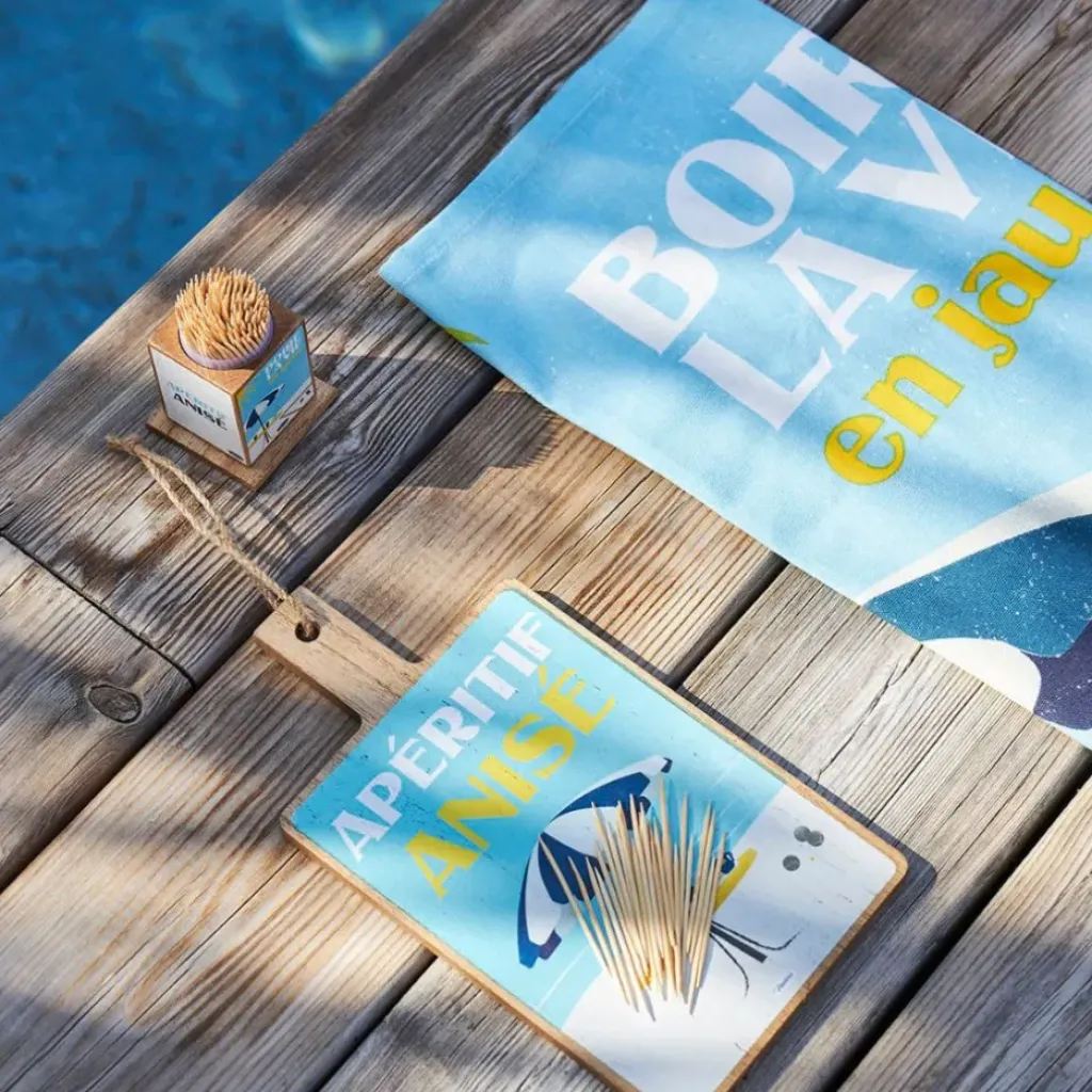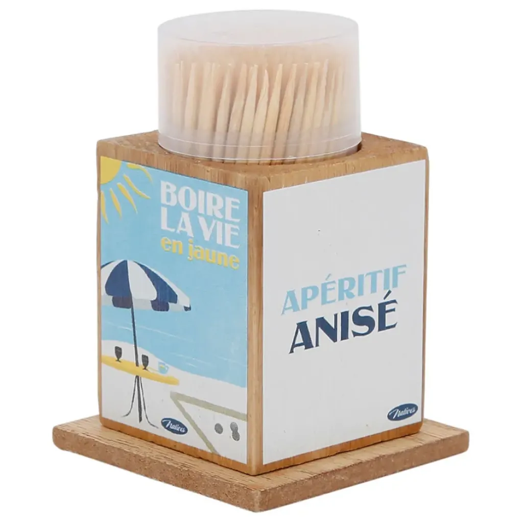 Découvrez notre boîte à cure-dents en pin et panneau de bois bleu et jaune, idéale pour sublimer vos moments conviviaux !