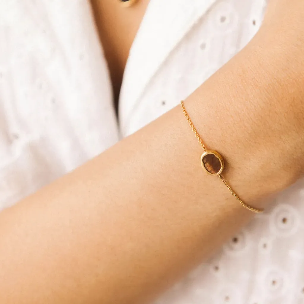 Envoutante et délicatement parfumée, cette bougie captive les sens et cache dans sa cire, un bracelet doré à l’or fin, ornée d’une pierre ŒIL DE TIGRE (Marron) : pour surmonter ses peurs et oser prendre des risques .