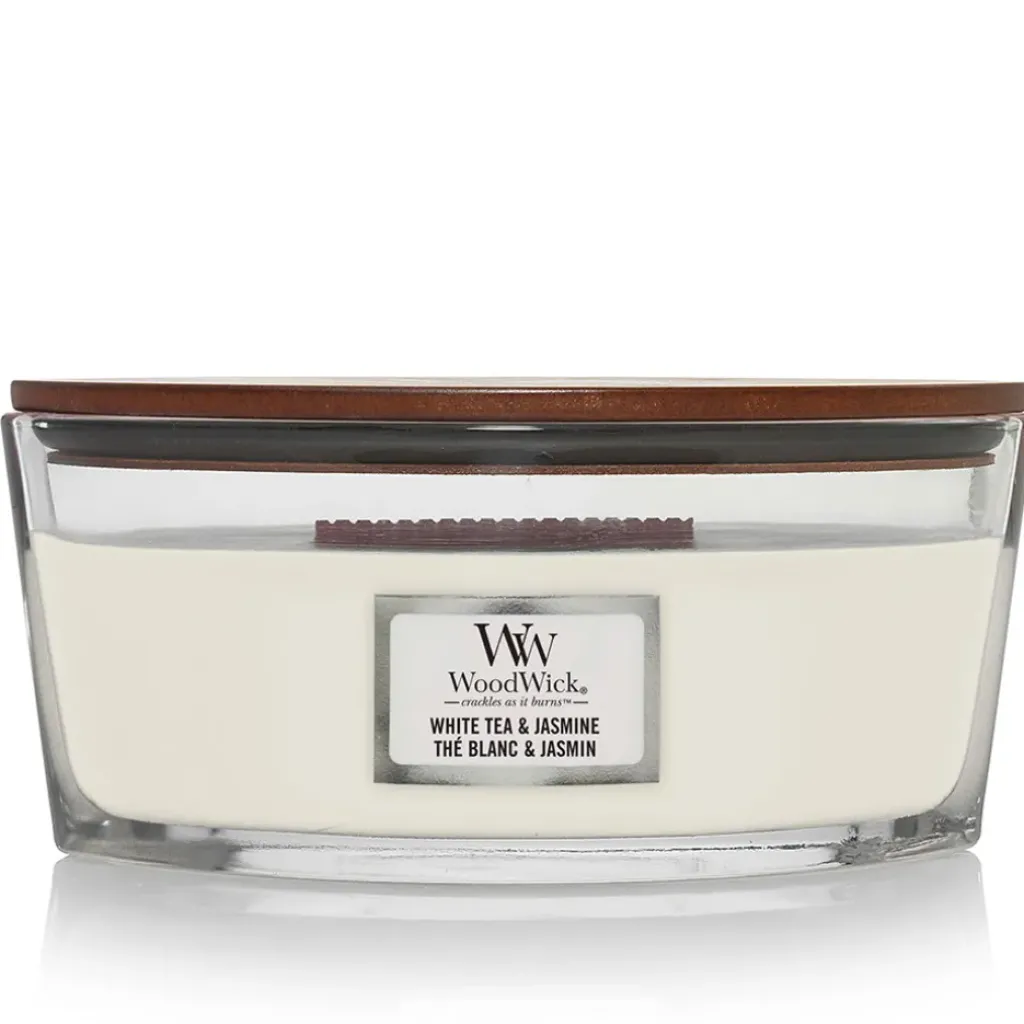 Découvrez la bougie ellipse thé blanc & jasmin de la marque Woodwick, une véritable invitation à la détente et à l’évasion.