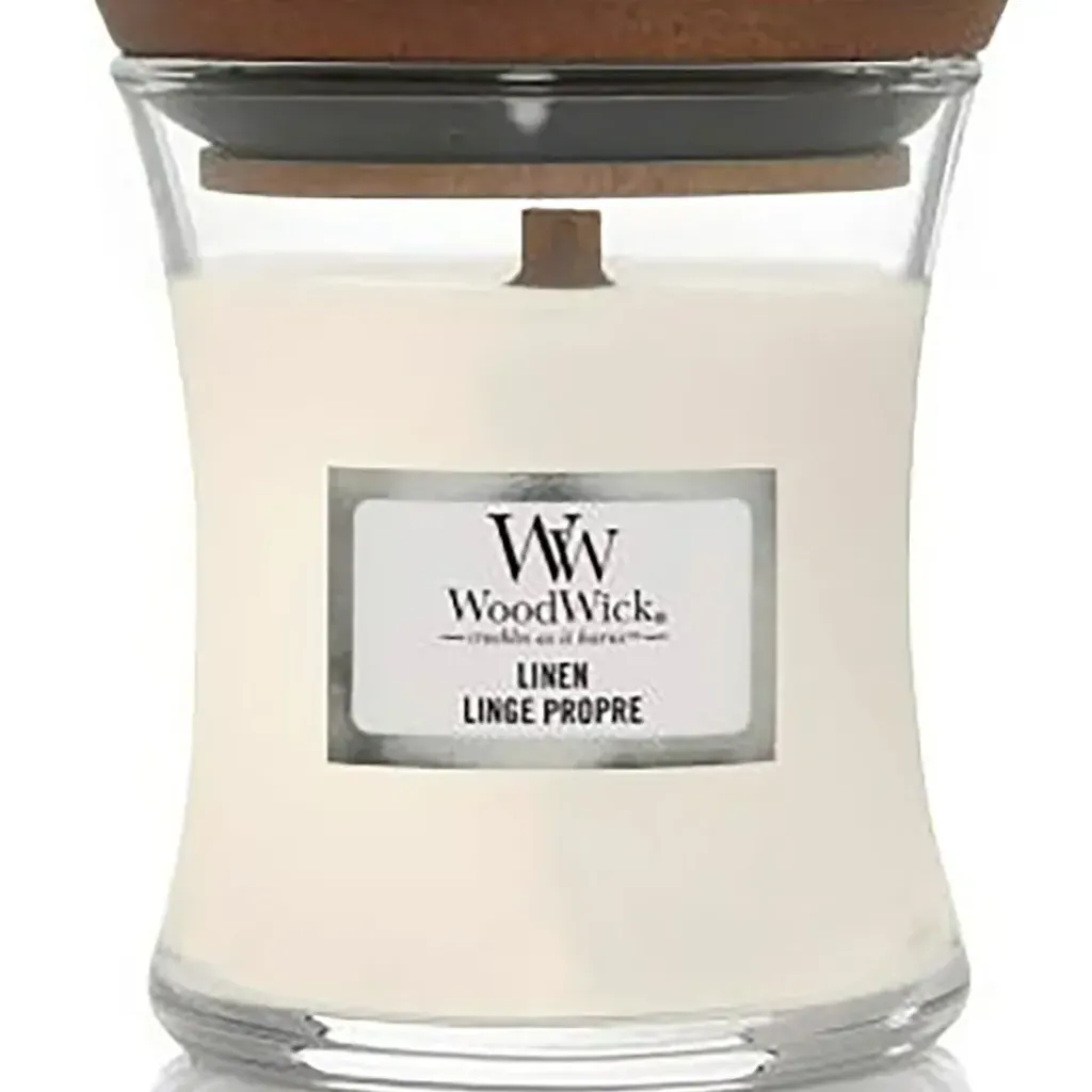 Découvrez notre magnifique bougie jarre « Linge Propre Mini » de la marque Woodwick !