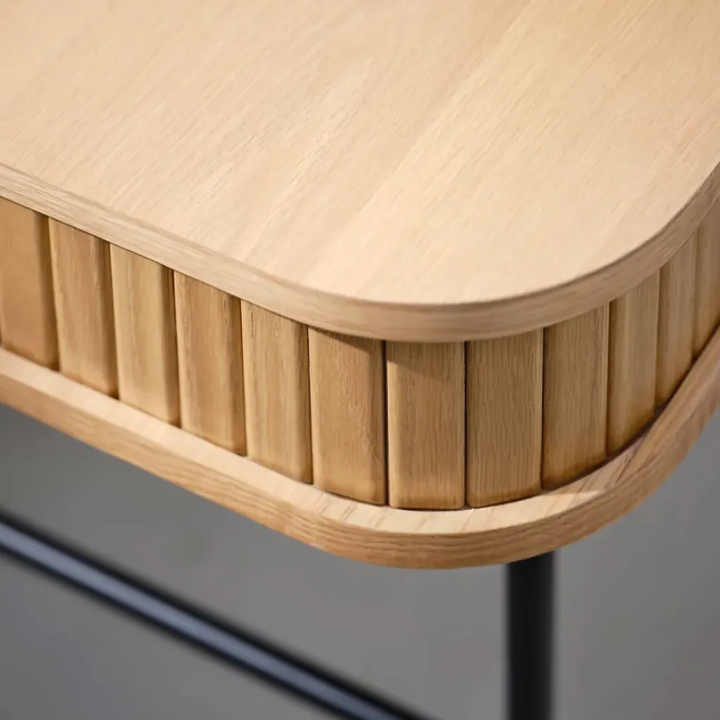 Découvrez le bureau Nola en placage chêne naturel, alliant design minimaliste et fonctionnalité.