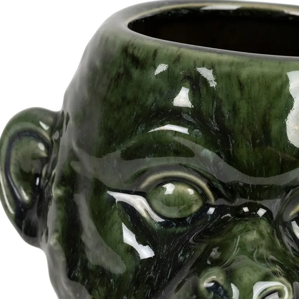 Transformez votre espace avec une touche d’originalité grâce à ce cache pot singe en grès décoratif.