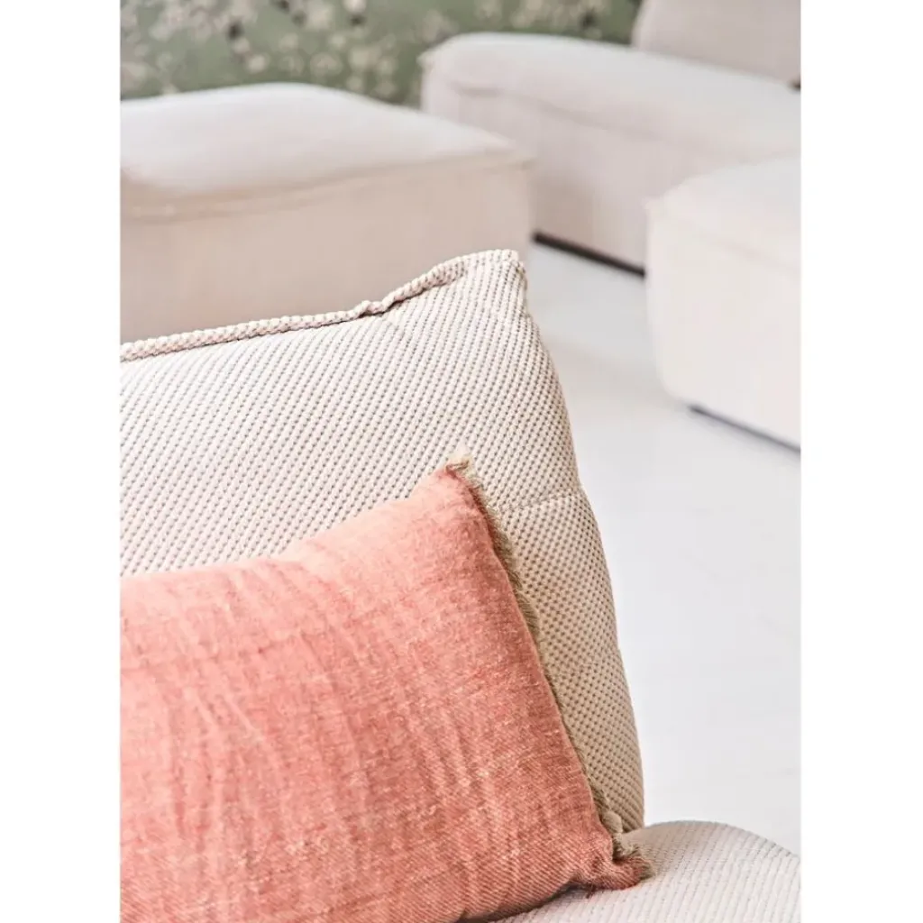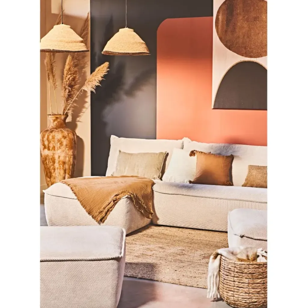 Le canapé modulable 4 places avec pouf Aubin en ivoire est un choix idéal pour apporter confort et modernité à votre salon.