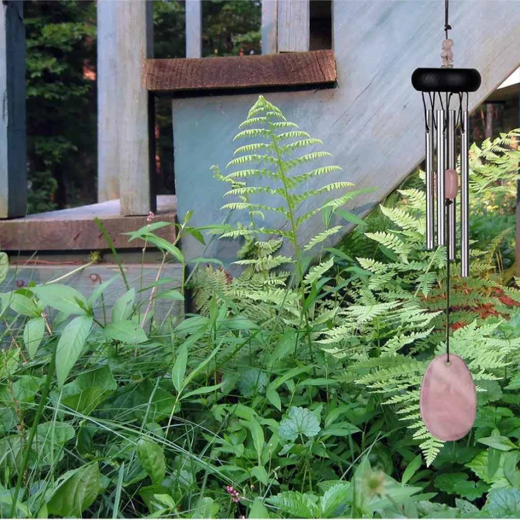 Fabriqué en quartz rose, le carillon se distingue par son allure naturelle et son charme intemporel.