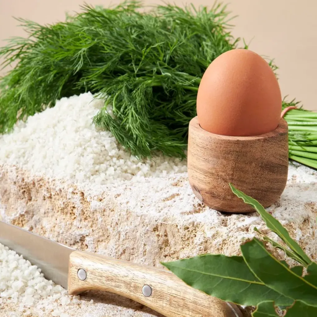 Découvrez le coquetier en acacia naturel Dalbert, un accessoire chic pour sublimer votre table.