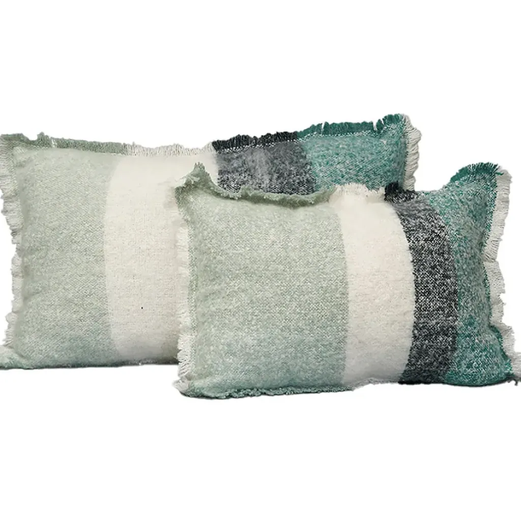 Le coussin en laine Calypso de 40×60 cm en coloris céladon est une véritable invitation à la détente.