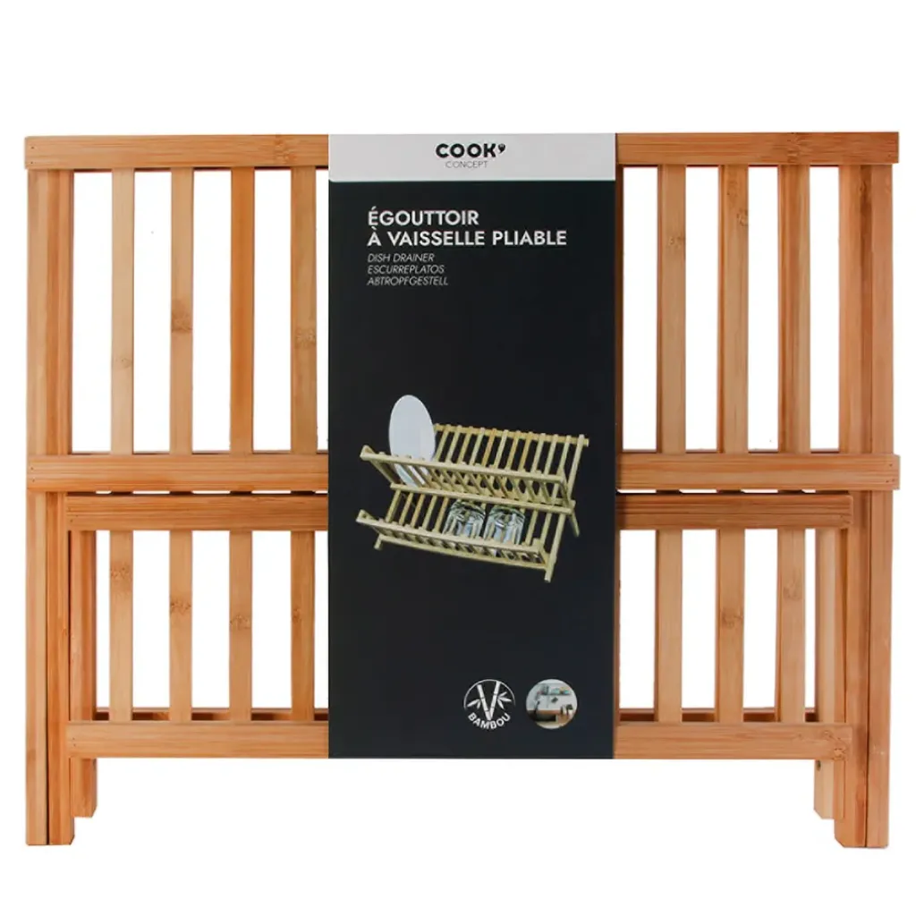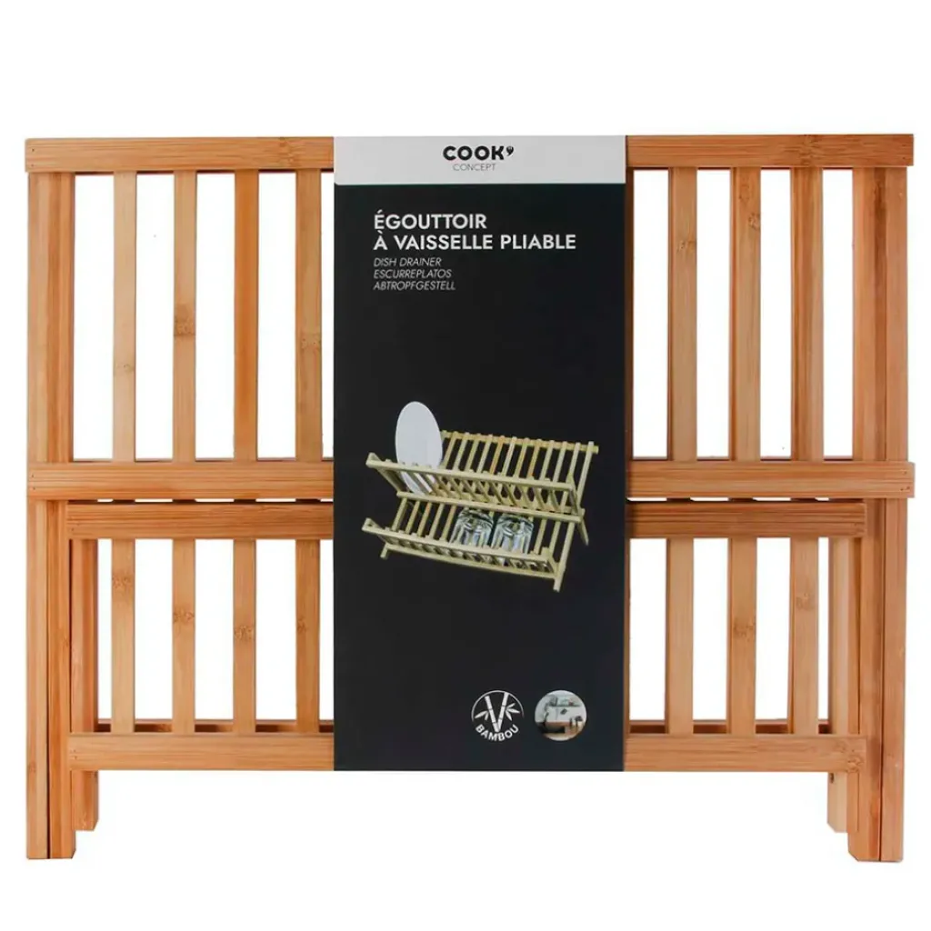 Ce porte-vaisselle est fabriqué en bois de bambou.