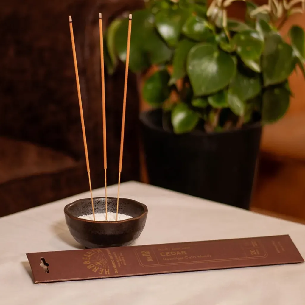 Plongez dans un univers olfactif de pure évasion avec notre encens « Herbe et Earth Cèdre ».