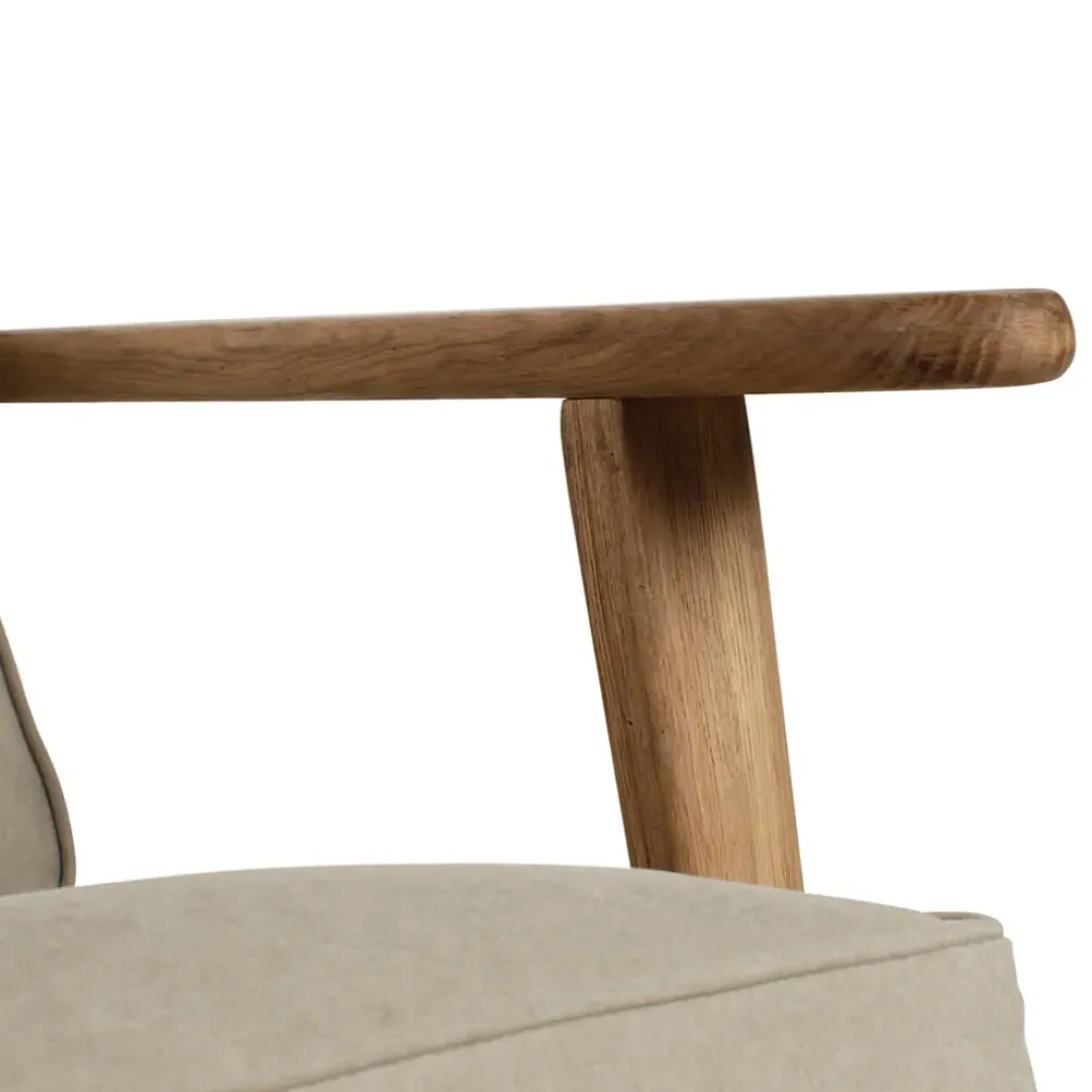 Succombez au fauteuil Laureli, véritable fauteuil design en bois et en tissus. Vous allez craquer pour ses lignes et la noblesse des matériaux utilisés : le chêne pour les accoudoirs et les pieds et le coto gris taupé pour les coussins.