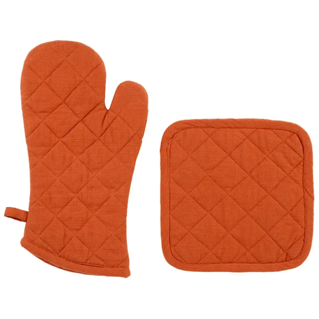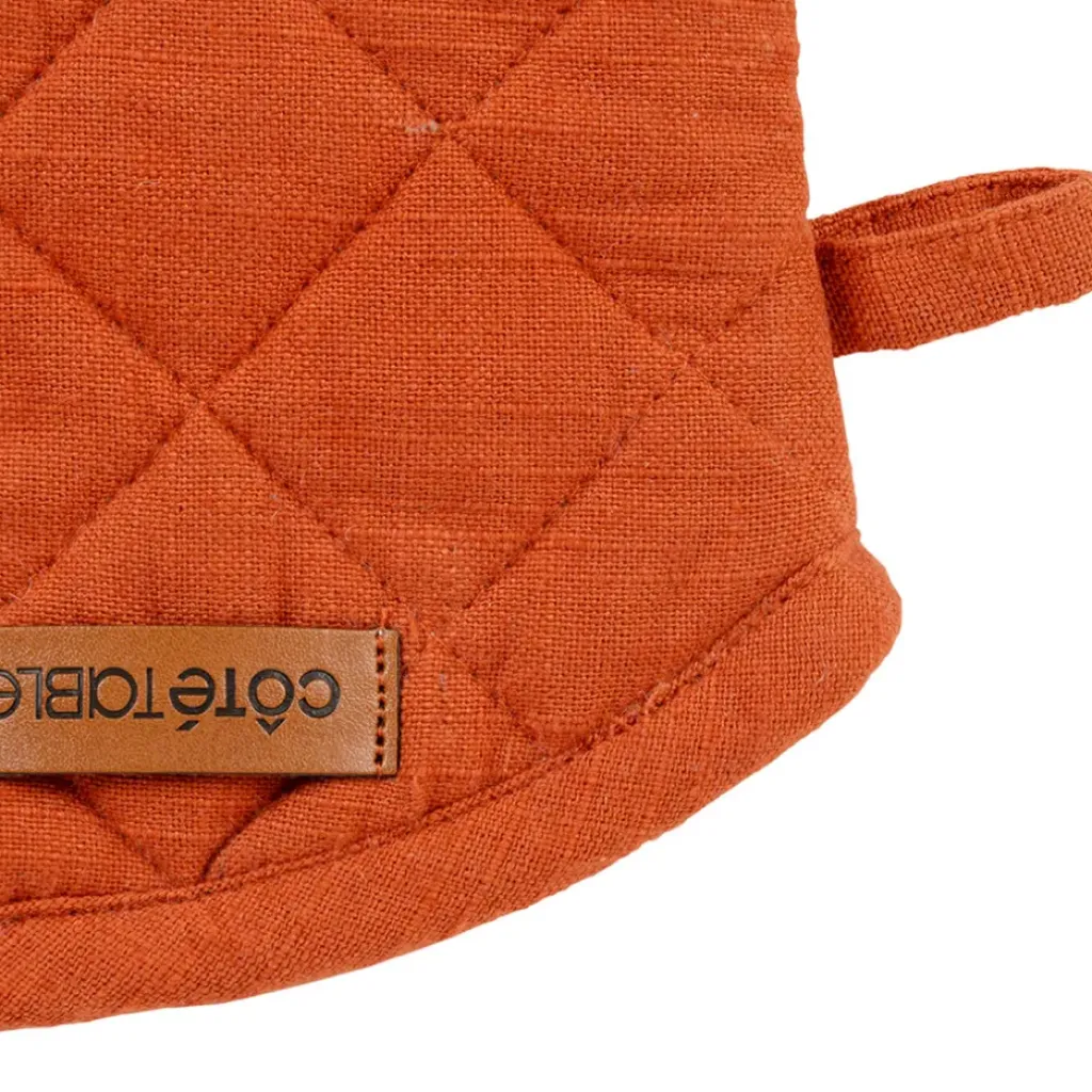 Découvrez le duo indispensable pour vos aventures culinaires : le gant et la manique en coton brique.