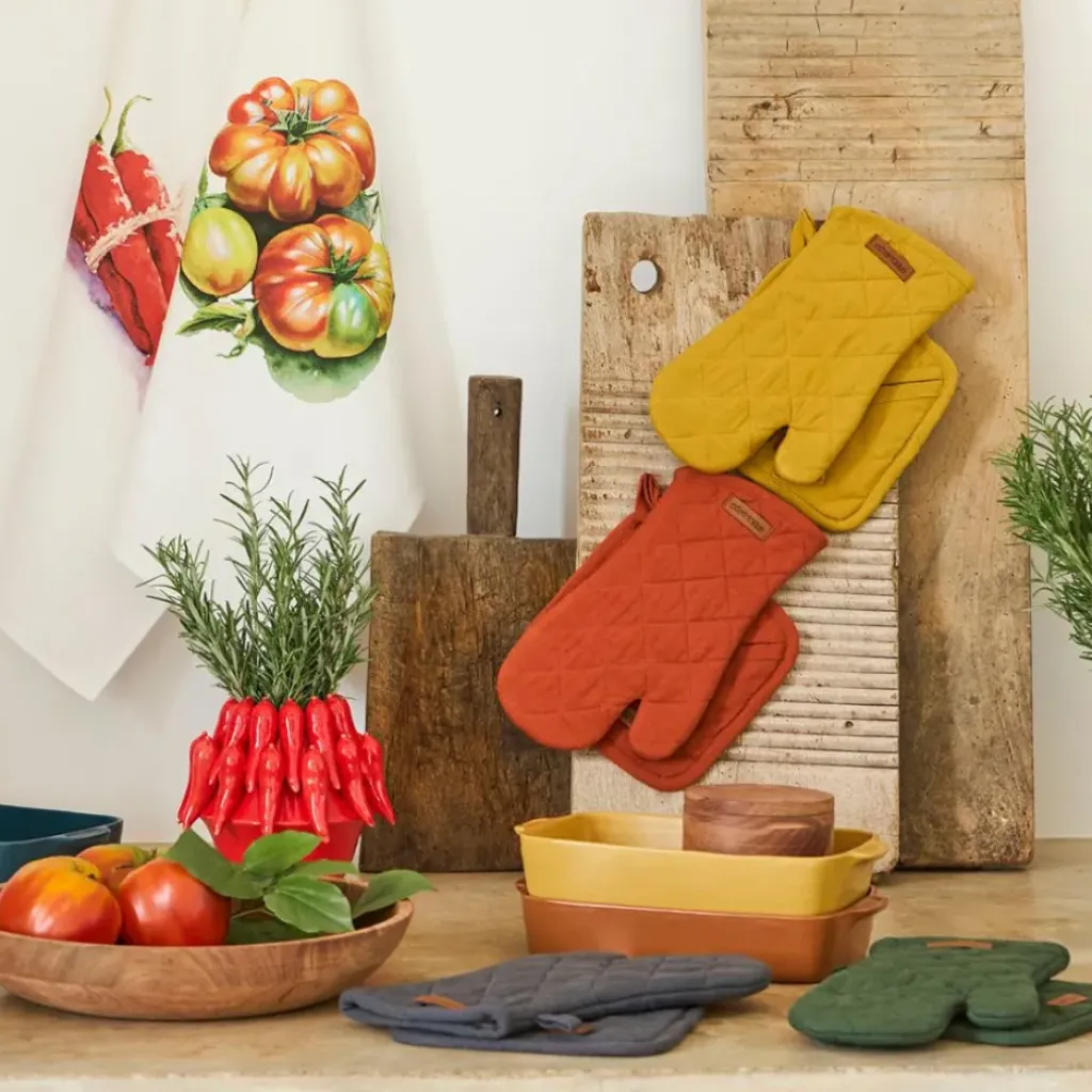 Découvrez notre ensemble pratique de gant et manique en coton romarin de Cellier, conçu pour rendre votre expérience culinaire à la fois agréable et sécurisée.