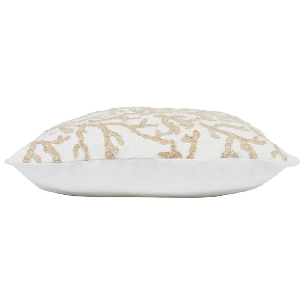 Ajoutez une touche de fraîcheur à votre décoration intérieure avec cette housse de coussin motif corail blanc et beige.