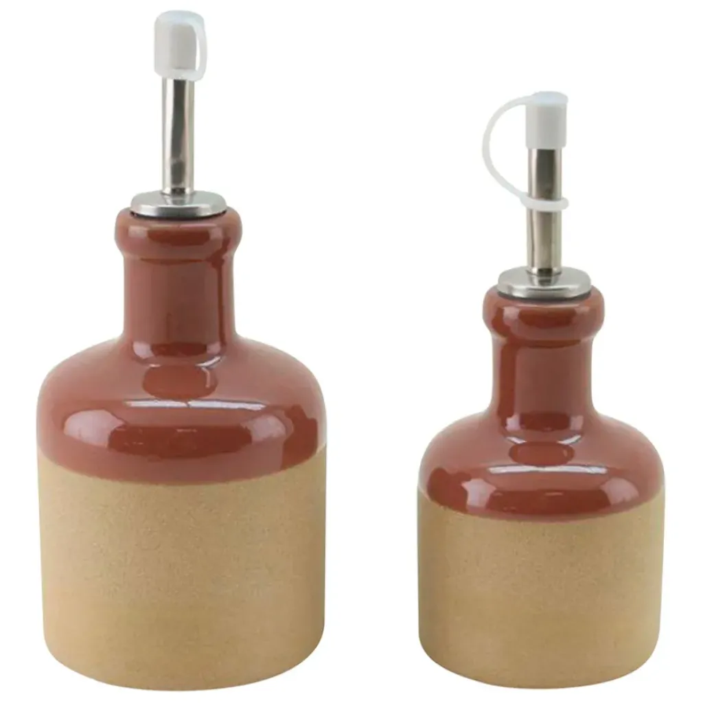 Découvrez le duo parfait pour agrémenter votre cuisine : notre huilier et vinaigrier en grès tomette.