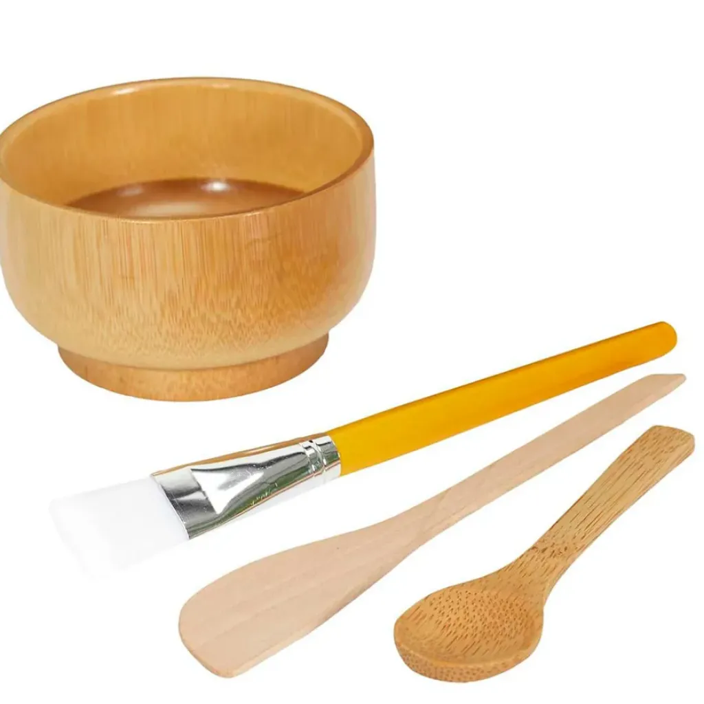 Kit de préparation pour soin du visage et du corps, composé d’un bol, d’un pinceau, d’une spatule et d’une cuillère