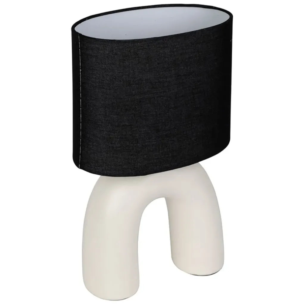 Fabriquée en coton écru et noir, cette lampe mesure 34,5 cm de hauteur, idéale pour éclairer votre espace de vie avec style.