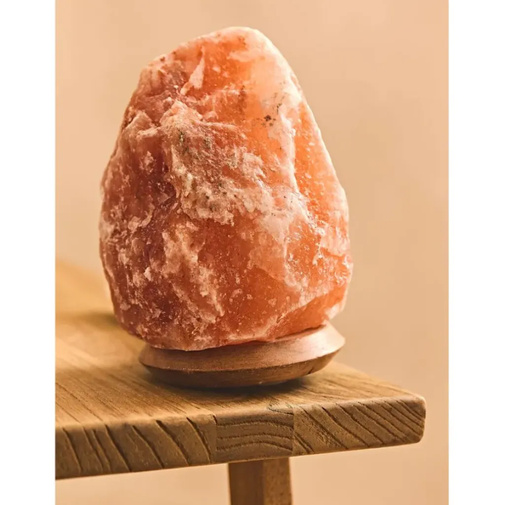 Lampe composée de cristal de sel originaire des montagnes de l’Himalaya dans lesquelles il s’est formé il y a près de 500 millions d’années.