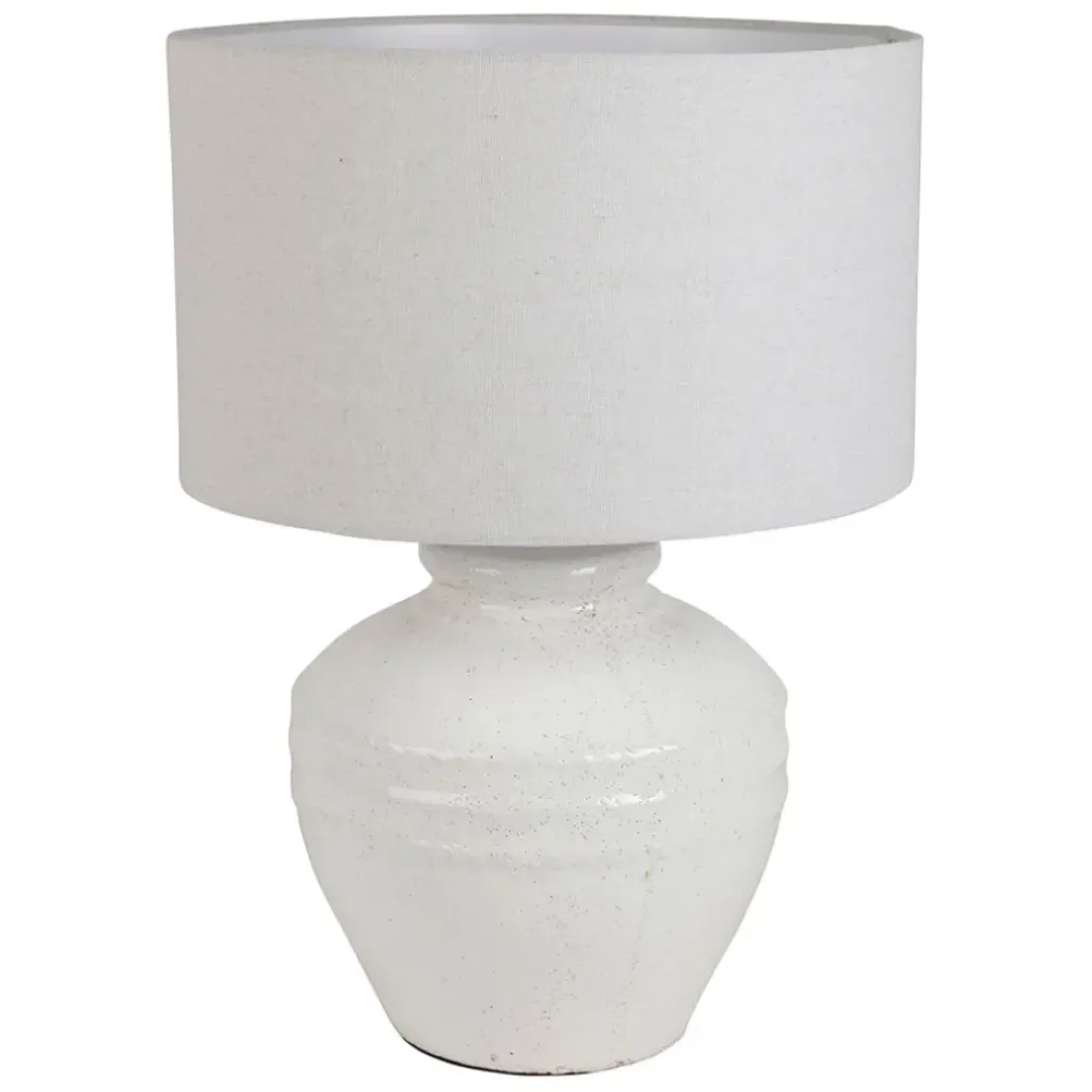 Cette lampe en terre cuite avec abat-jour en lin blanc incarne une fusion parfaite entre chaleur naturelle et design épuré.