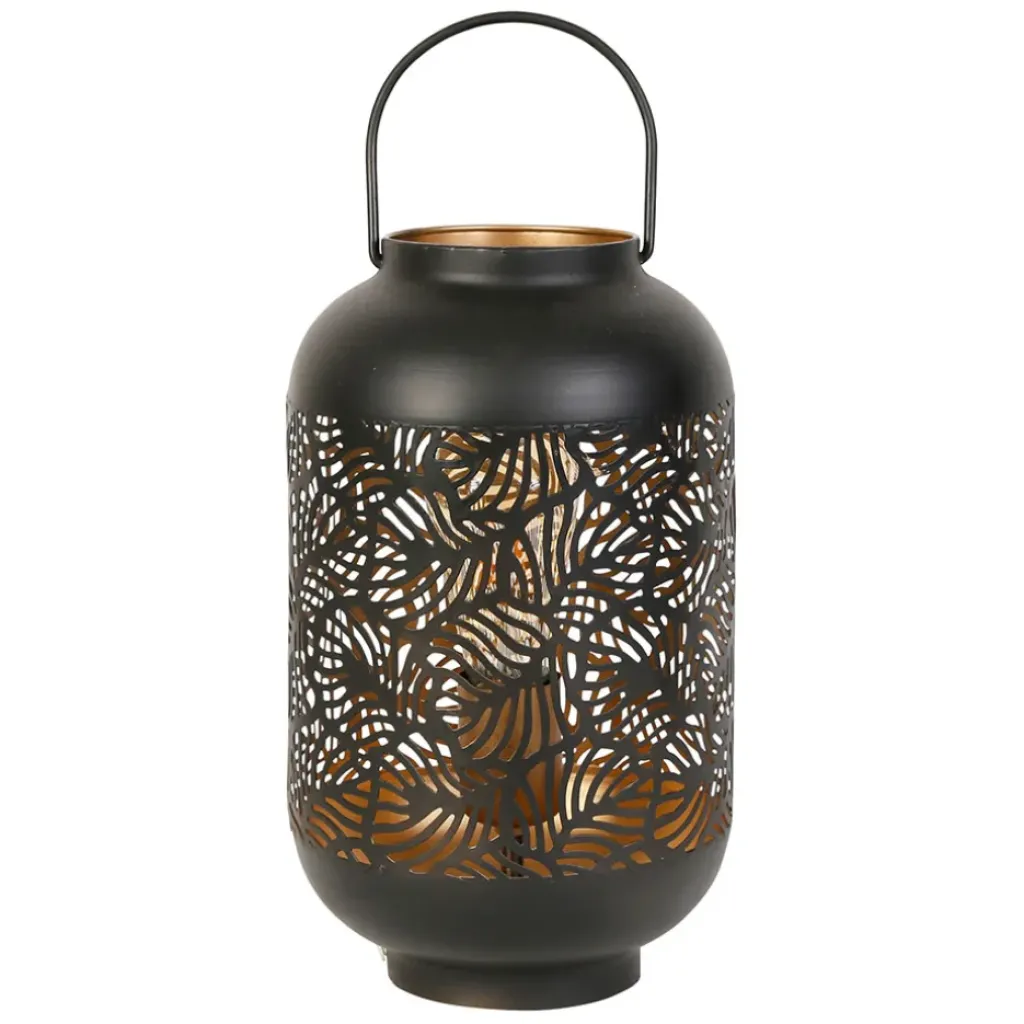 Découvrez la lampe lanterne en fer noir Panellia, d’une hauteur de 32,5 cm, pour une ambiance chaleureuse et élégante dans votre intérieur.CRÉATION UNIQUE