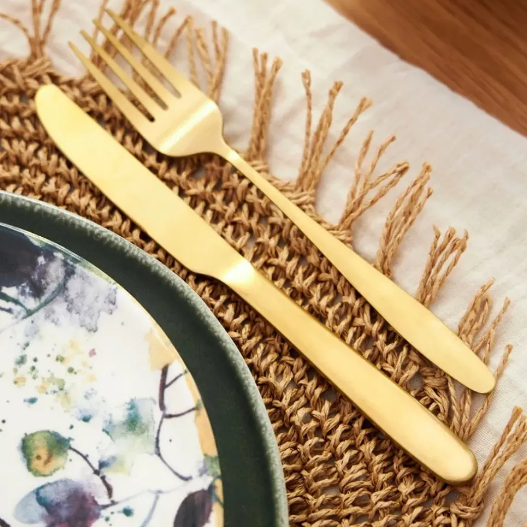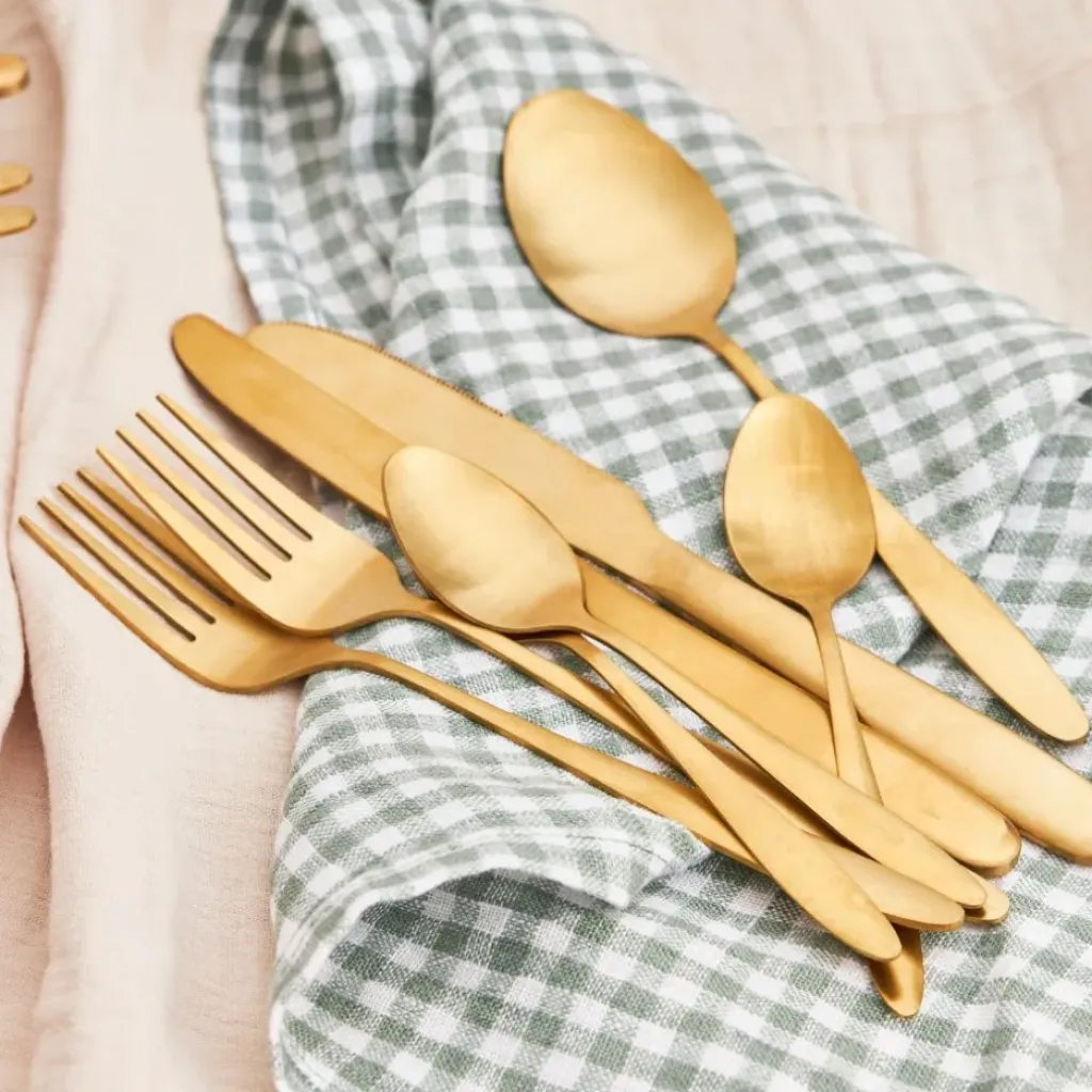 Découvrez notre ménagère de 16 pièces en acier doré, un ajout incontournable pour transformer vos repas quotidiens en moments exceptionnels.