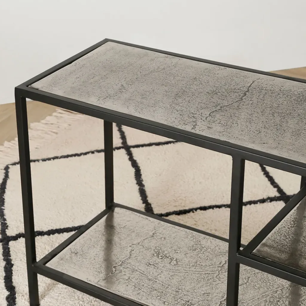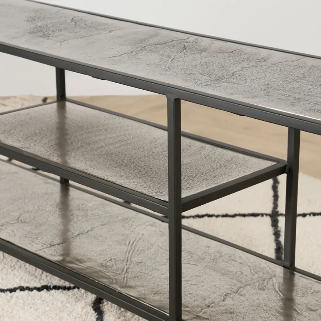 Ce meuble TV en fer s’accordera parfaitement à n’importe quelle pièce. Son look industriel présente une finition argentée qui lui confère une allure classique-chic