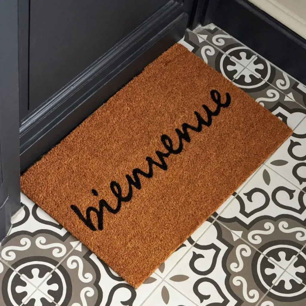 Un paillasson en coco avec l’inscription « Bienvenue » est parfait pour placer devant votre porte d’entrée.