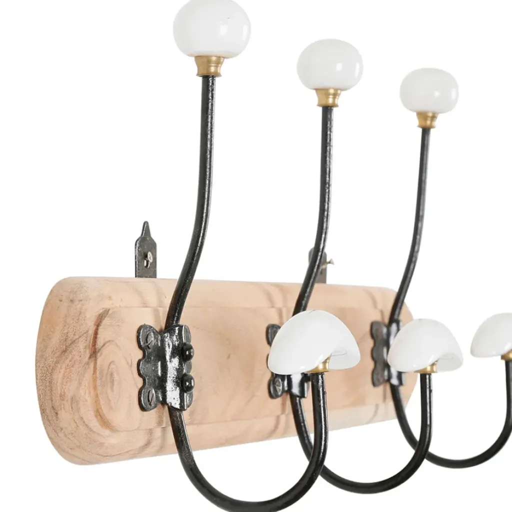 rCette patère est l’accessoire indispensable pour optimiser l’espace de votre maison.Acacia + fer + céramique