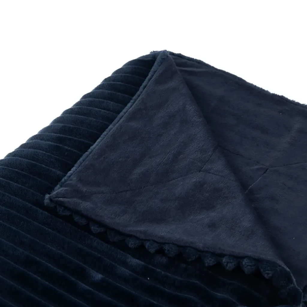 Ajoutez une touche chaleureuse et accueillante à votre espace avec ce plaid en laine mérinos bleu marine.