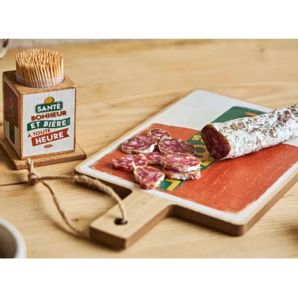 Découvrez la planche à découper en bois multicolore 14x26cm **Copains D’Abord**, un accessoire indispensable qui ajoutera une touche joyeuse et originale à votre cuisine.