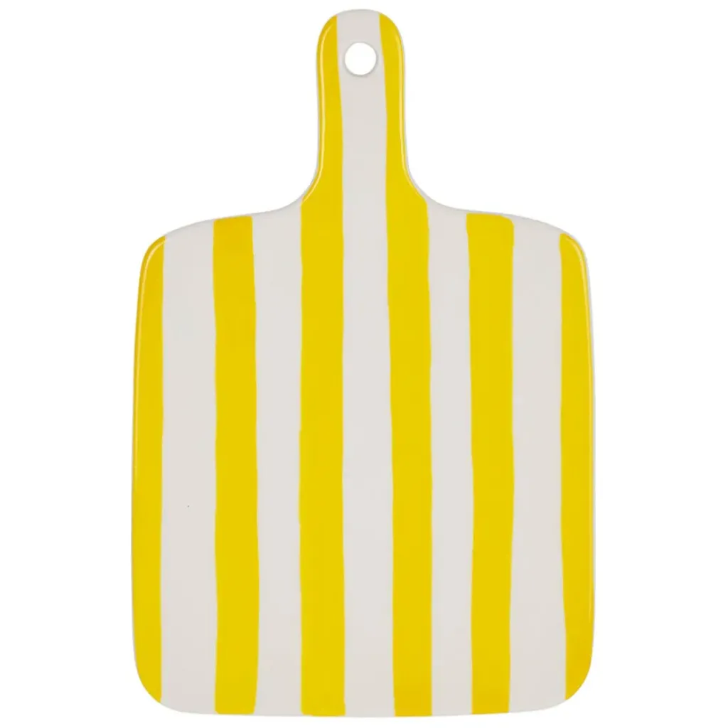 Ses rayures jaunes et blanches ajouteront une touche de couleur vive à votre cuisine, tout en étant un outil pratique pour vos préparations quotidiennes.