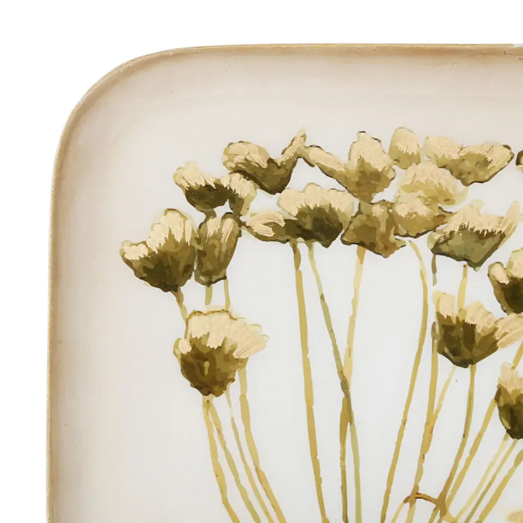 Découvrez notre plateau carré kaki et doré en fer de 16x16cm, orné d’une élégante fleur classique. Parfait pour apporter une touche de sophistication à votre intérieur.Fer / Iron