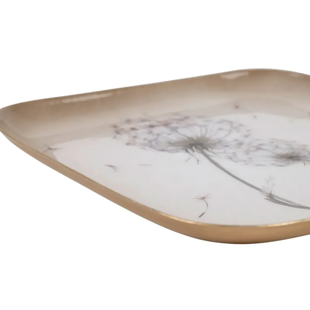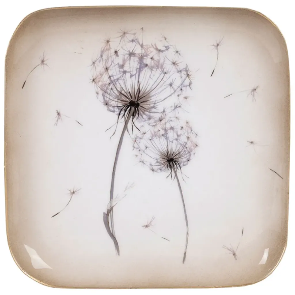 D’une dimension de 16×16 cm, ce plateau en fer arbore un motif délicat de pissenlit, apportant une touche de fraîcheur par son design floral et sa couleur mauve douce.