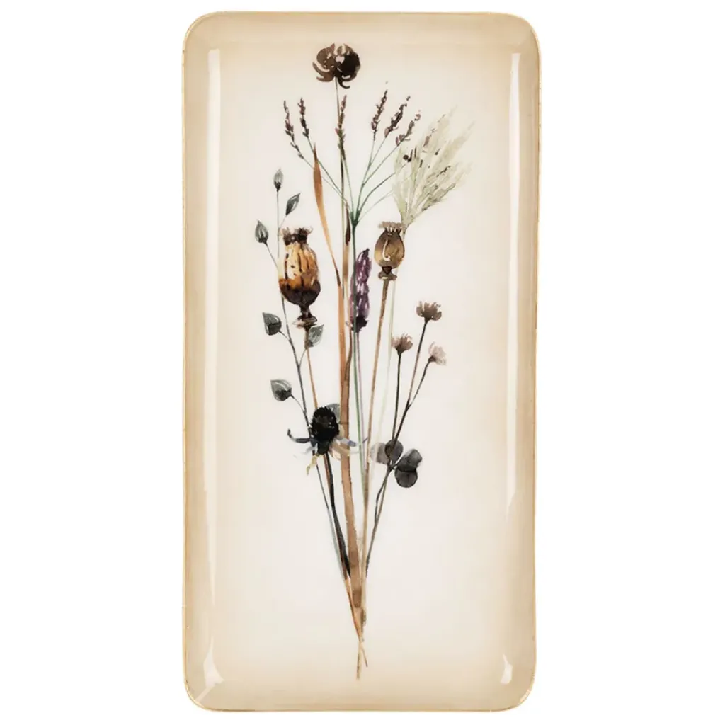 Craquez pour ce magnifique plateau floral en fer multicolore mesure 15,5 x 30,5 cm.