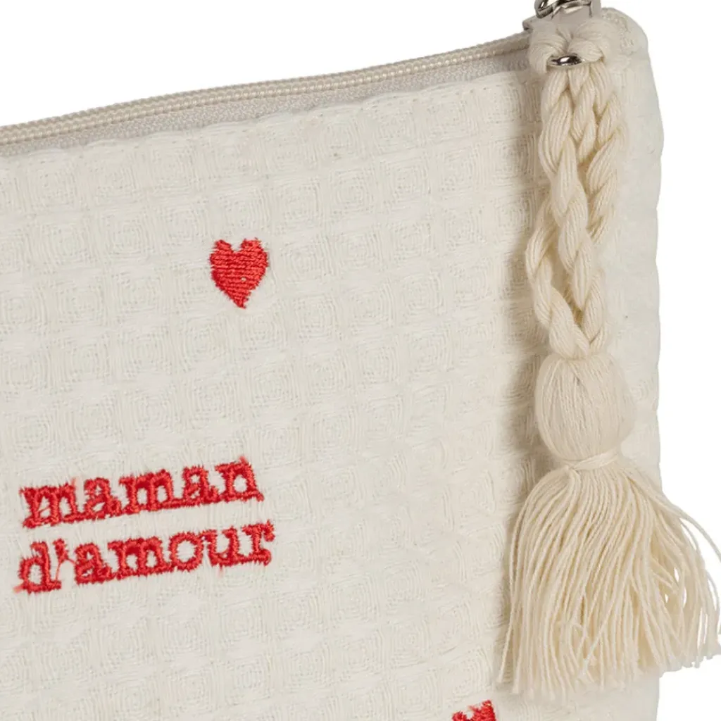 Découvrez notre pochette en coton écru et rouge, l’accessoire indispensable pour toutes les mamans dynamiques.
