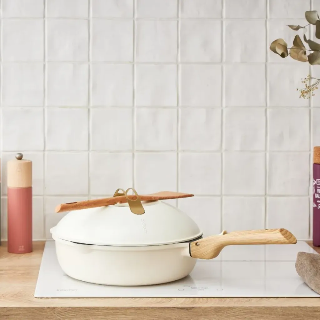 La poêle fabuleuse d28cm – meringue de Cookut est un ustensile de cuisine polyvalent qui peut remplacer huit autres ustensiles de cuisine.