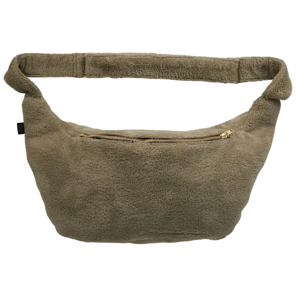 Ajoutez une touche de sophistication à votre style avec notre sac banane en velours kaki – St Tropez.