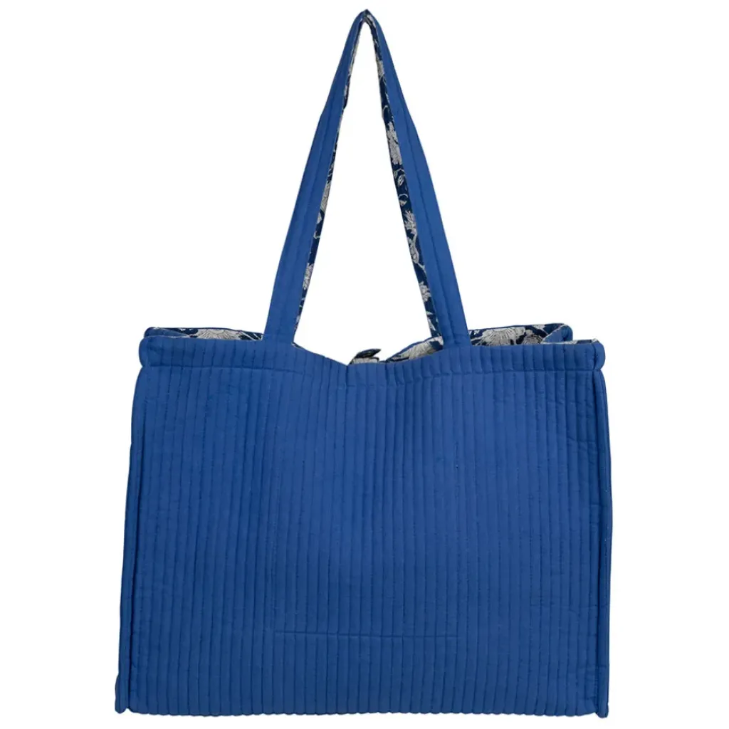 Découvrez le sac en coton matelassé indigo, une pièce unique qui allie praticité et esthétisme.