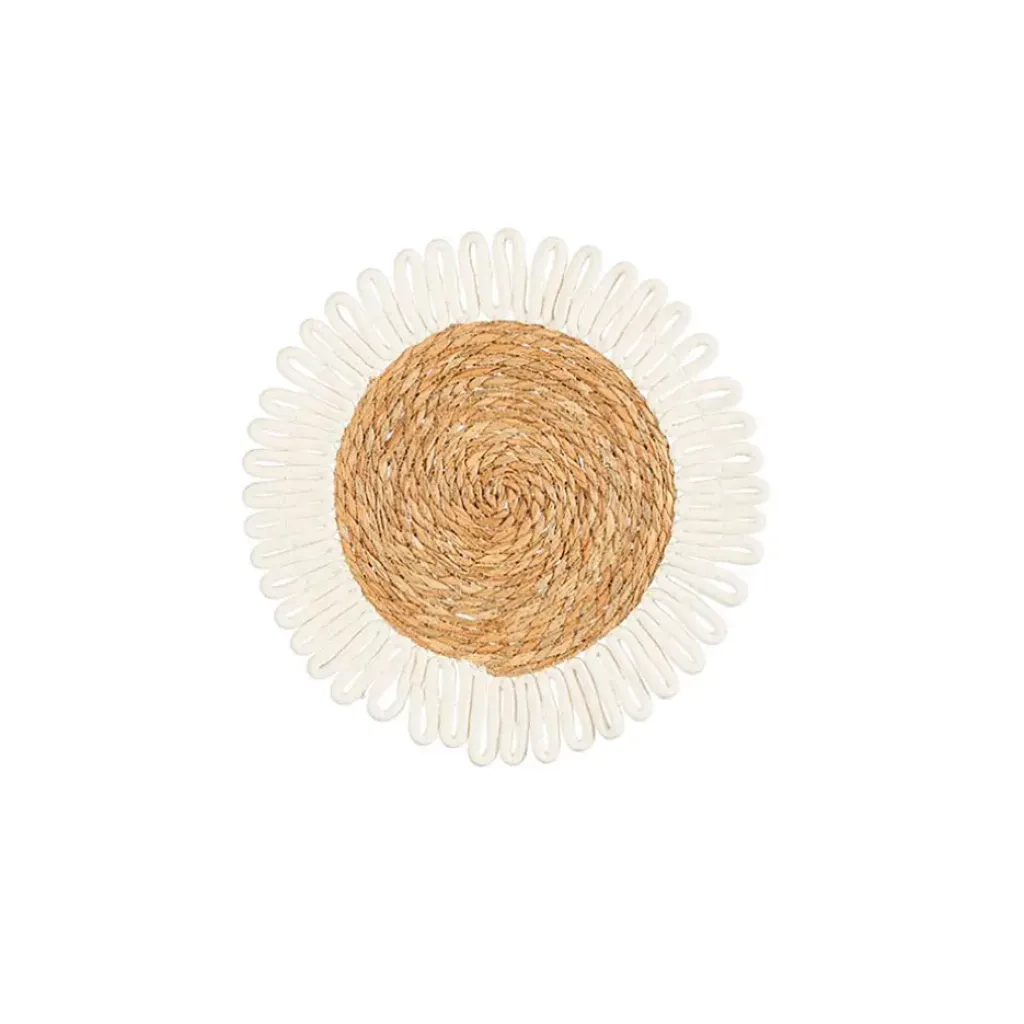 Son tressage délicat en fibre végétale crée un joli relief tout en protégeant votre table avec élégance.