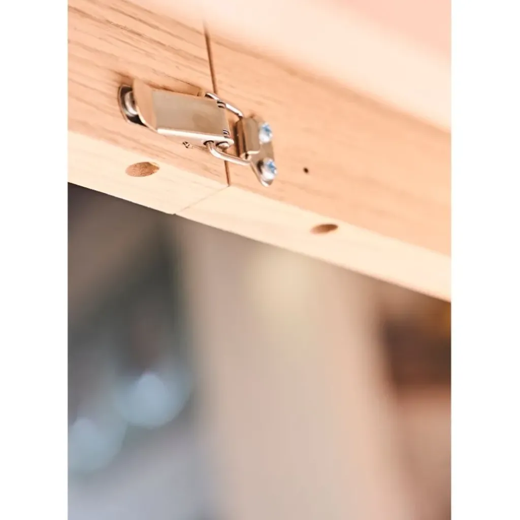 Structure : panneau de particules plaqué chêne, vernis (Quercus robur ; origine : Roumanie), rails en métal.