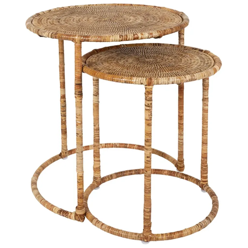 Découvrez la Table gigogne rond par 2 en fer et rotin naturel Pasil, un véritable bijou pour votre intérieur !