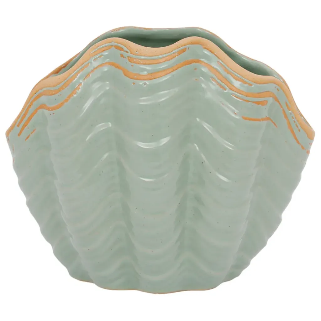 Venez découvrir notre Vase coquillage vert d’eau 18.5×12.5xh15cm gres de la marque Côté Table à découvrir sur Fabrique de Styles.Grès / Stoneware