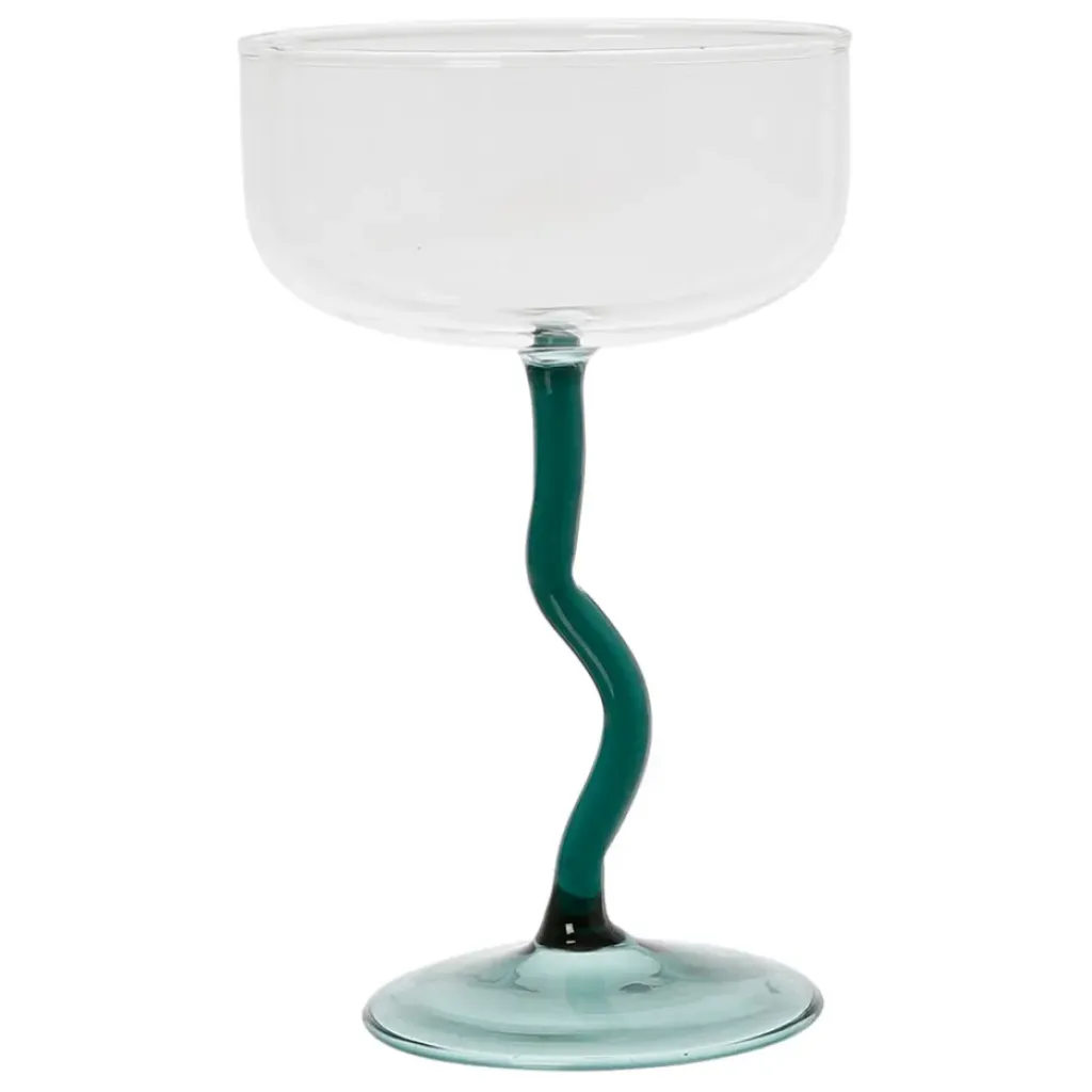 Le verre pied cocktail en verre borosilicate émeraude de 42.5cl de la collection « Funny » incarne une esthétique tendance et moderne.