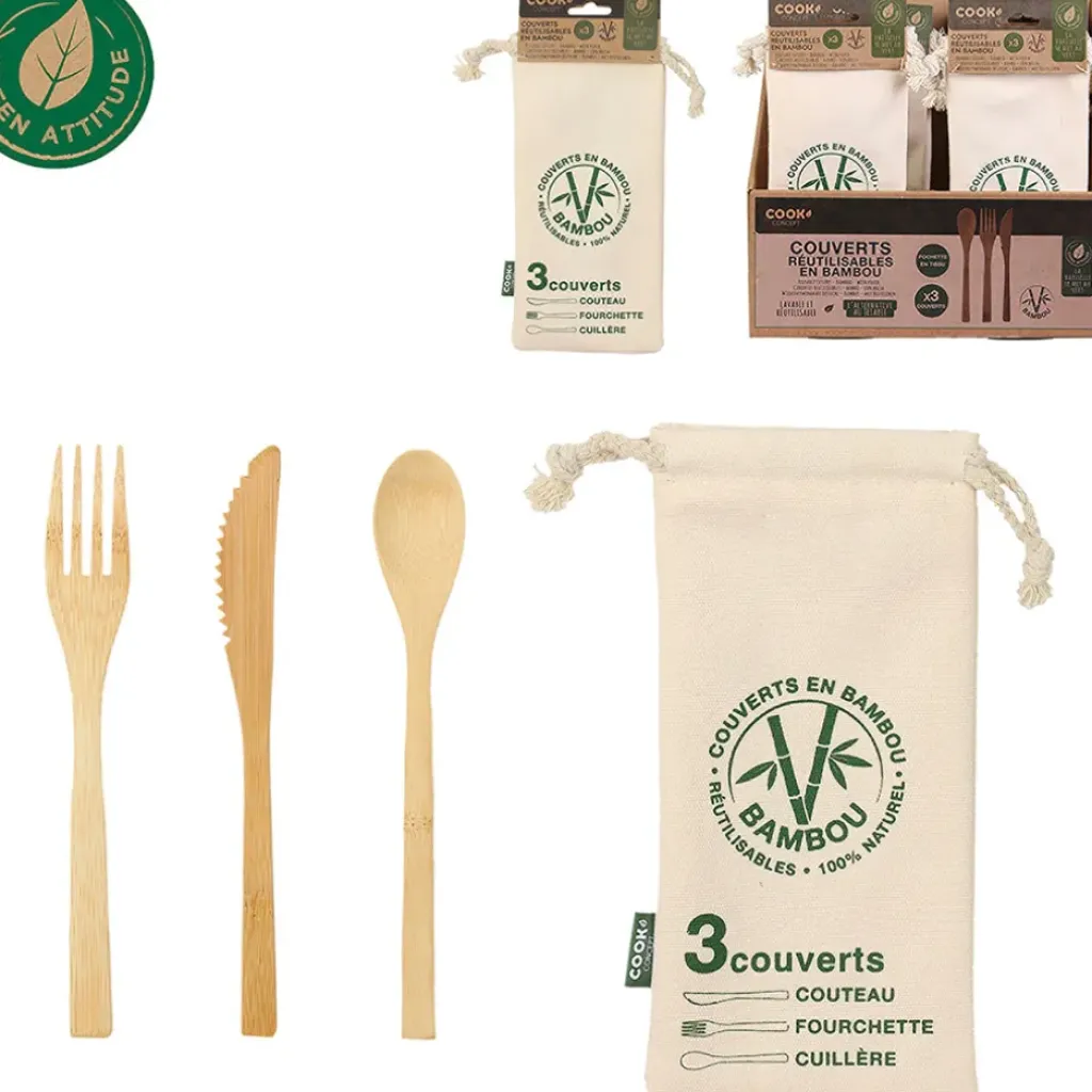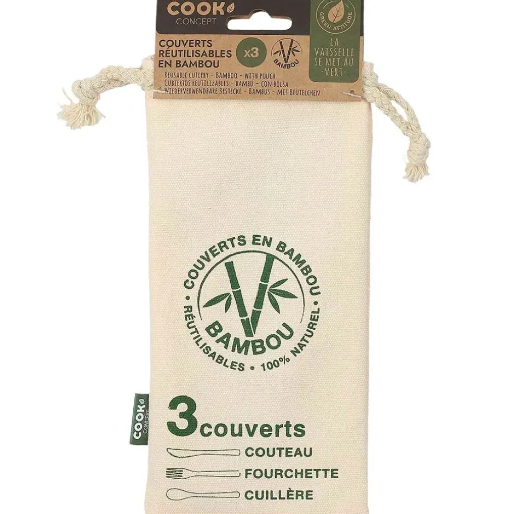 Venez découvrir notre 3 couverts réutilisables en bambou de la marque Cook conce à découvrir sur Fabrique de StylesTritan