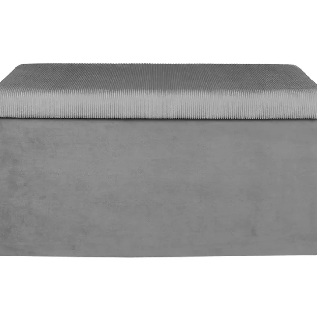 À la fois banc d’appoint et espace de rangement, ce coffre pliable Julia en velours côtelé gris coche toutes les cases !