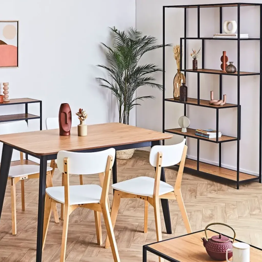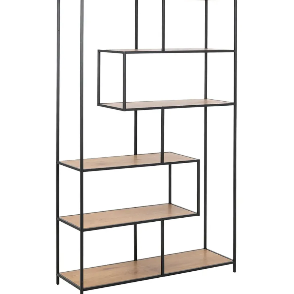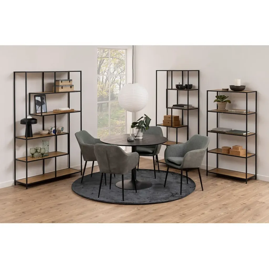 C’est un élément de design moderne qui ajoute naturellement de la profondeur à n’importe quel intérieur.En métal thermolaqué noir mat, 5 étagères en papier chêne sauvage mat.