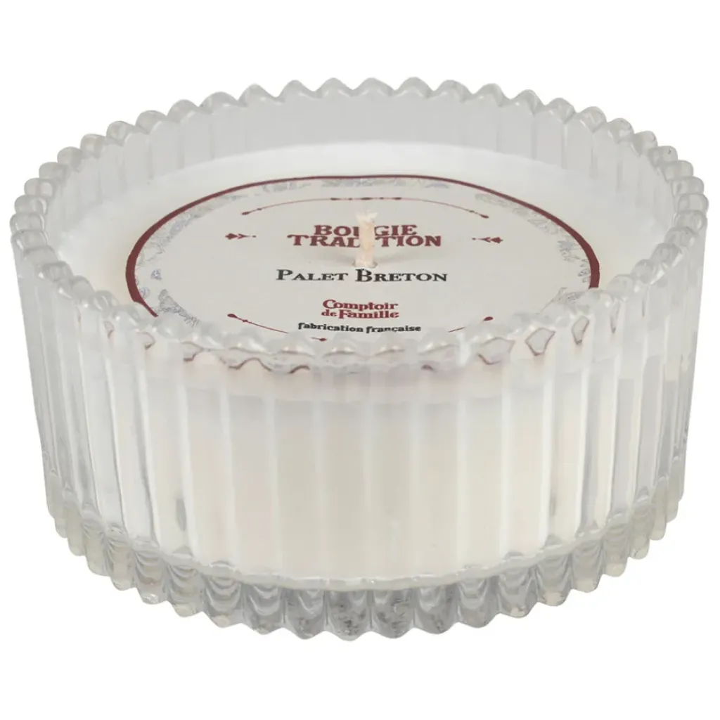 Découvrez notre bougie senteur palet breton blanc, une création qui évoque la douce nostalgie des savoureux goûters bretons.
