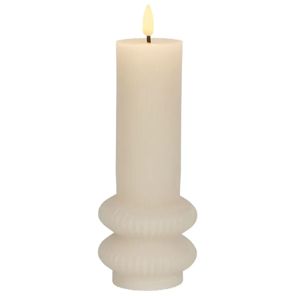 Illuminez votre ambiance avec cette bougie LED en pilier d’un délicat coloris ivoire, mesurant 21 cm de hauteur.