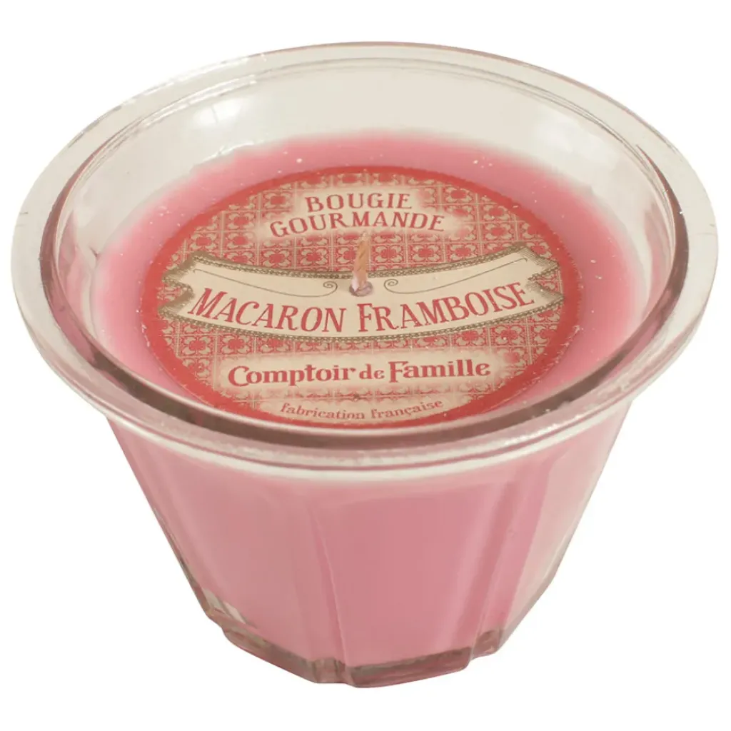 Découvrez une expérience olfactive unique avec notre bougie parfumée à la senteur de macaron framboise.